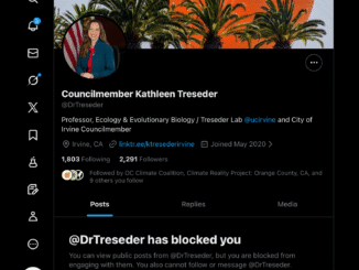 Irvine Council Member Treseder Blocks Residents from X.com Account; Will She Suffer Christina Shea’s Fate? February 2, 2026 0