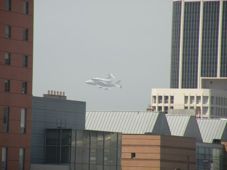 The SpaceShuttle Endeavor has arrived in Southern California and as luck would have it, a business meeting placed me downtown at 10:30AM. At the end of the meeting, I was invited to the rooftop of the Los Angeles Times to view the shuttle’s arrival.