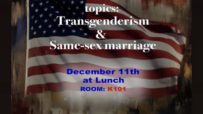 Irvine’s Woodbridge High is of the verge of a state football championship and the school’s Turning Point USA is about to go to war over Transgenderim and Sam Sex Marriage.